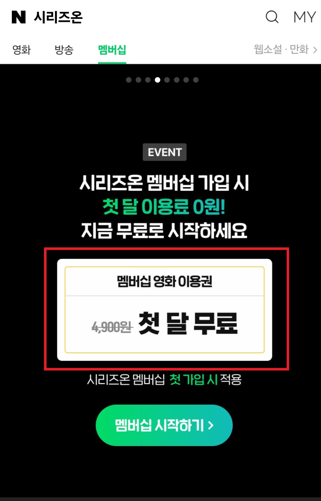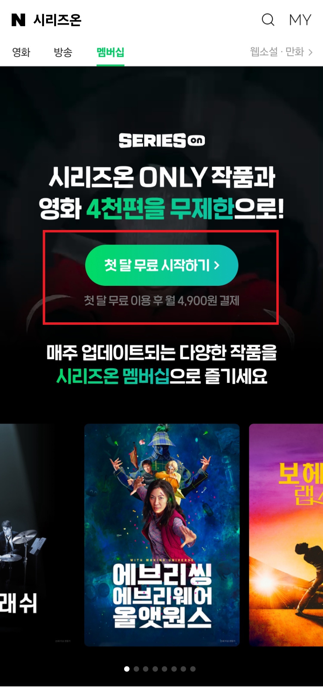 지금 네이버 시리즈온 멤버십 가입하시면 한 달은 영화 4천 편이 무료로 시청이 가능하니 꼭 이용해 보시기 바랍니다.