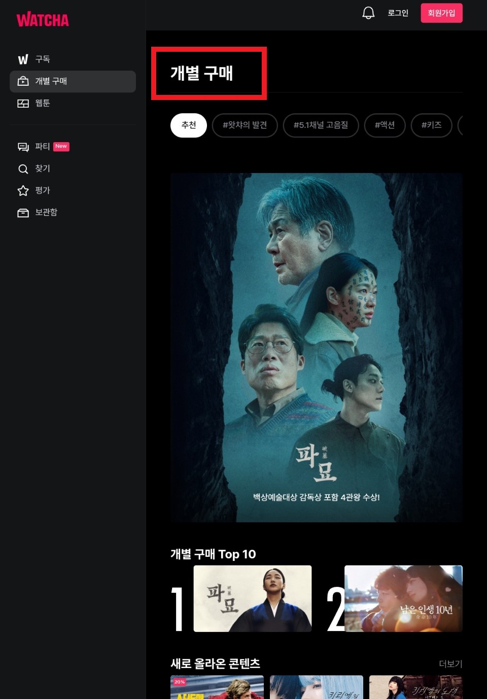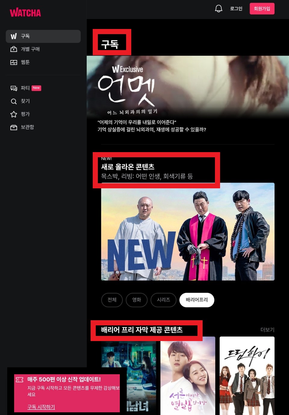 세 번째로 소개해드리는 사이트는 왓챠(WATCHA)