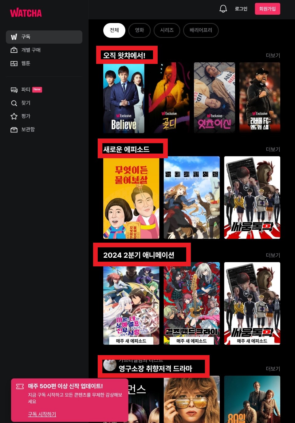 왓챠 - 13만 편의 영화, 드라마, 애니, 예능 무제한 감상