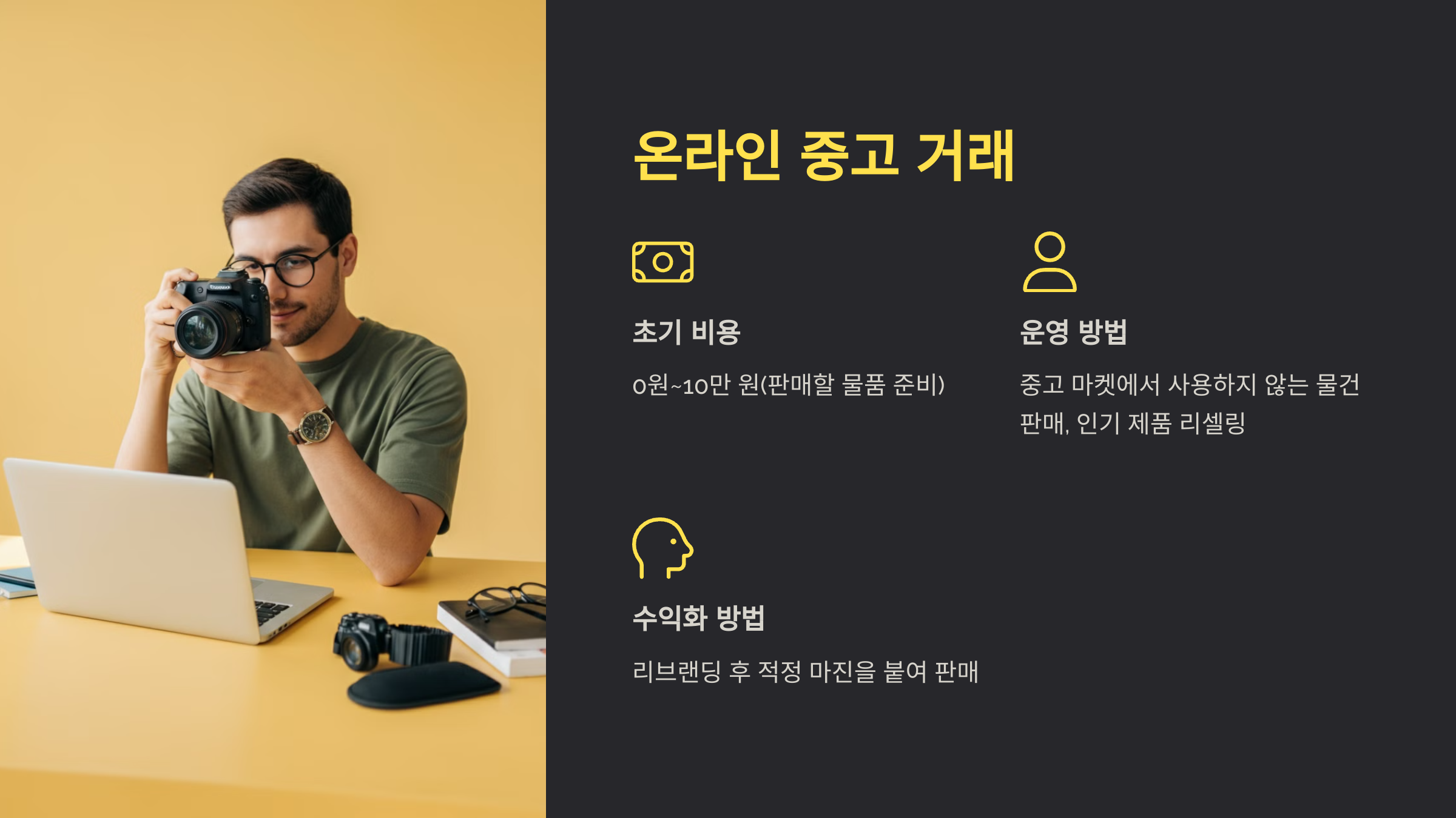 - 초기 비용: 0원~10만 원(판매할 물품 준비).